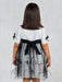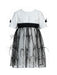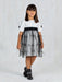 Designer's Cat – An Empire dress in cotton and silk with a high-waisted bodice and a wide skirt that highlights the silhouette. The dress is decorated with ostrich feathers and crystal beads on embroidered black tulle. A perfect choice for your little lady to look stunning at her special occasion.