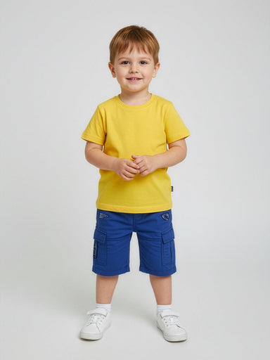 BABY BOYS CLOTHING Trendy printed cotton shorts for boy with elasticated waistband and side pockets cargo, in Blue color. It's very comfortable pra...