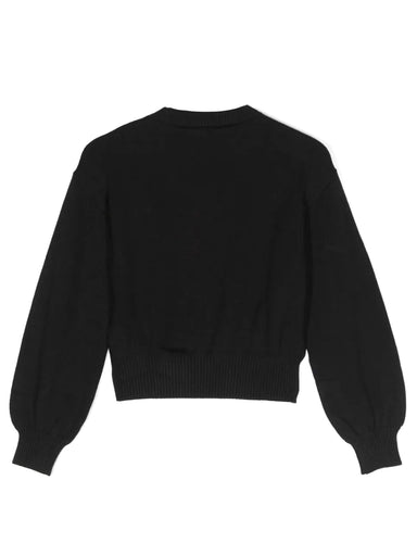 Twinset Girl's Clothing Girls’ black short fitted dress made from tulle, with pleats. Long see-through sleeves, crew neck and metal Oval T logo. Th...