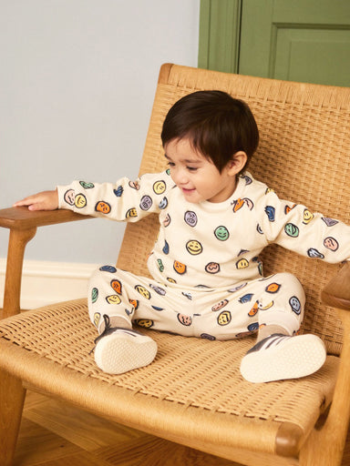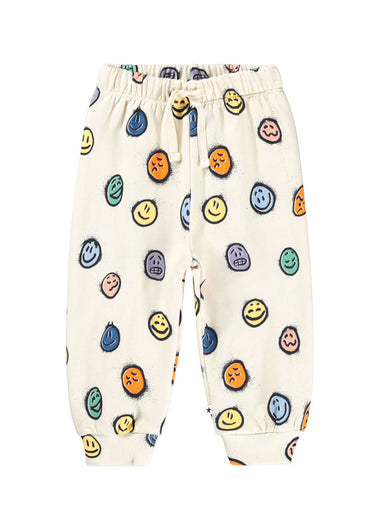 BABY CLOTHINGPlayful soft pants in organic cotton for the little ones, with soft white faces in different moods on the knees. The pants have elasti...