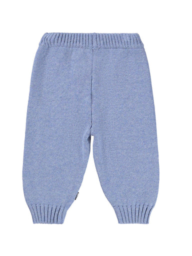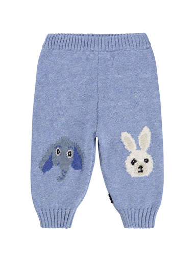 BABY CLOTHINGPlayful pants for the little ones made of a soft ribbed knit in light blue, of cotton and wool with cute animals on the knees. The pan...