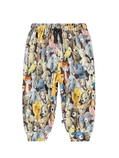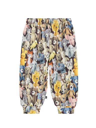BABY CLOTHINGCute colorful pants in organic cotton for the little ones, a print of crocheted animals. The pants have elastic and a tie at the waist...