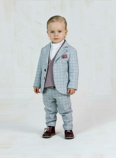 BOY CEREMONY CLOTHING "Designer's Cat" suit's jacket for little boy, made of excellent fabric, yarn dyeing cotton. It is decorated with lovely butt...