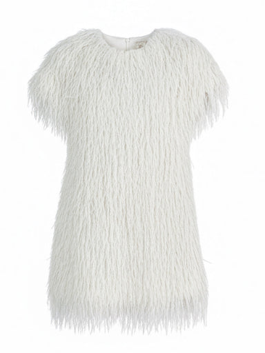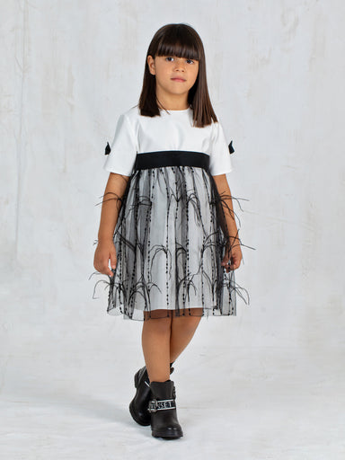 GIRLS’ CLOTHING Designer's Cat – Velvet A-line printed dress and sequin, round neckline and short sleeves decorated with Ostrich feathers. Inner li...