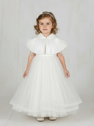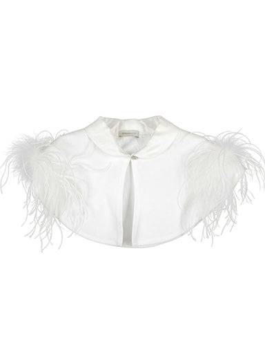 BABY CLOTHING An elegant silk bolero for little girl, with a round collar decorated with feathers on the shoulders and a jewelry button. A beautifu...