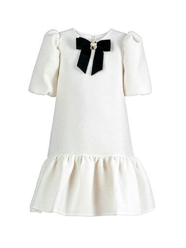BABY GIRL CLOTHING Designer's Cat - Cute baby girls dress, made of mixed silk with round collar, puffed sleeves and a flared skirt with a ruffled h...