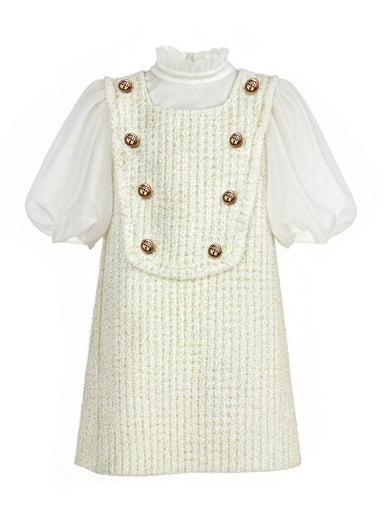 GIRLS’ CLOTHING Designer's Cat – Fashionable sleeveless jacquard dress Chanel-style, decorated with special buttons. The total completed with impre...