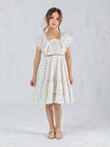 GIRLS’ CEREMONY CLOTHING Designer's Cat – Long Renaissance-style dress, for little girls, made of fine French lace on soft tulle. Round neck, skirt...