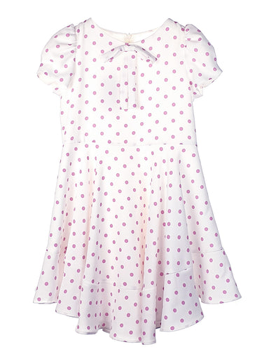 GIRL CLOTHING Elegant polka dot dress for girls in soft and light fabric with wide sleeves with elasticated hem for added comfort, decorated with r...