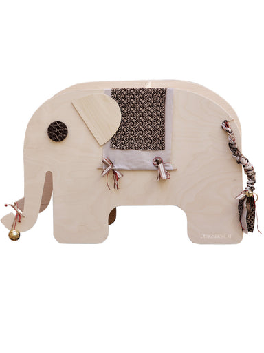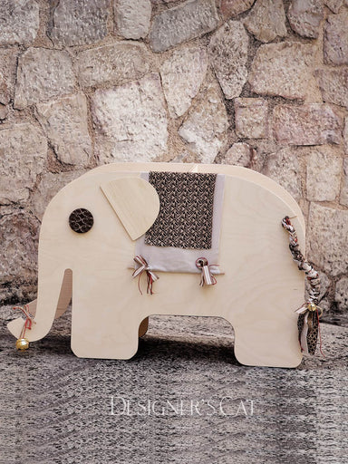 Handmade box from birch wood with cotton strap and brass fittings, decorated with a wooden theme (elephant) from natural birch wood, painted en...