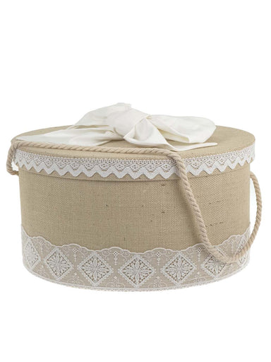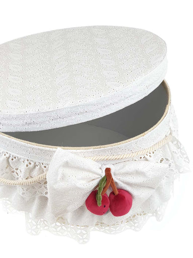 Oval baptism box made of elegant lace, decorated with handmade bow. It is combined with the matching baptism dress from the Designer's Cat collecti...