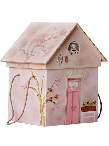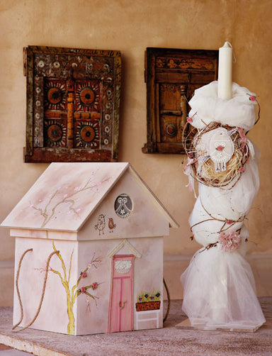 Handmade christening box of natural birch wood on the "house". Painted entirely by hand and decorated with lace, braid and flowers. Combined with d...