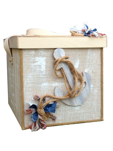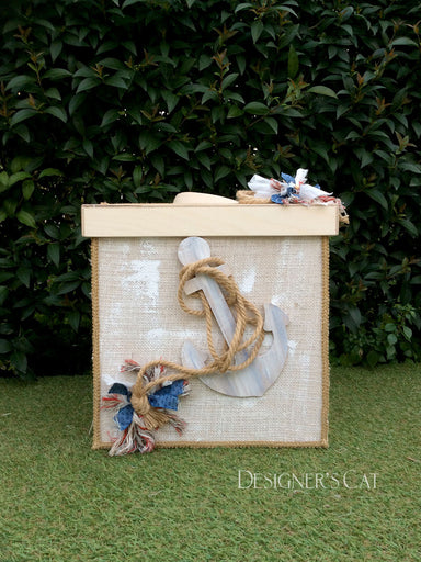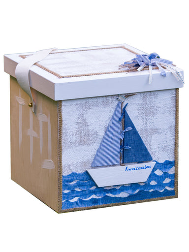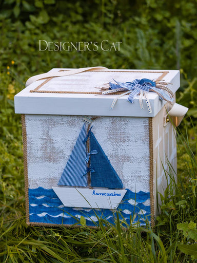 Handmade box from birch wood decorated with a wooden theme (boat) from natural birch wood, painted entirely by hand, decorated with fabrics, natura...