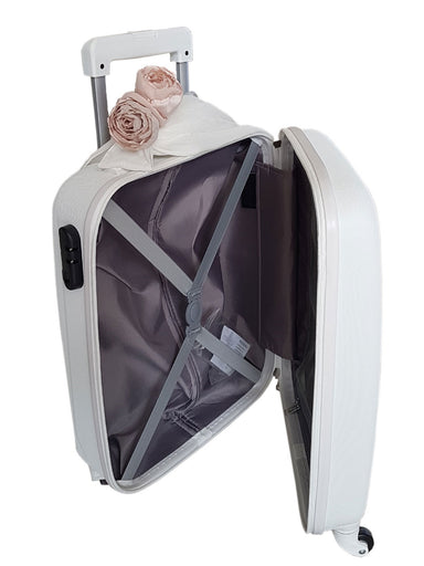 Stylish white Rolling Suitcase -on comes with a minimalist shell, an ergonomic handle that doubles as a scale, built- a TSA-approved lock, and 360-...
