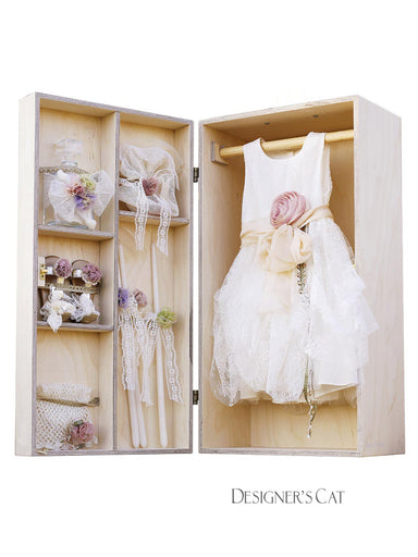 Handmade box from birch wood with cotton strap and brass fittings. Combined with the respective garment plan as well as a series of christening can...