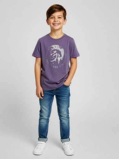 BABY BOYS CLOTHING A cotton t-shirt for boys, in purple color with short sleeves, and trendy print. It’s very comfortable practical and soft.