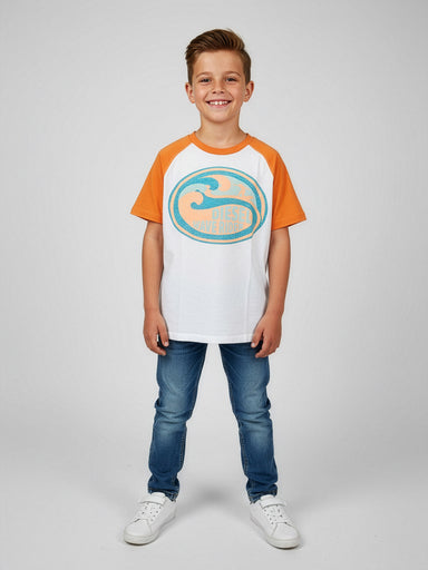 BABY BOYS CLOTHING A cotton t-shirt for boys, in orange and white color with short sleeves, and trendy print. It’s very comfortable practical and s...