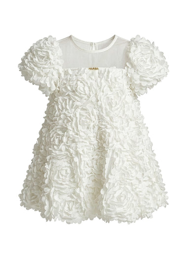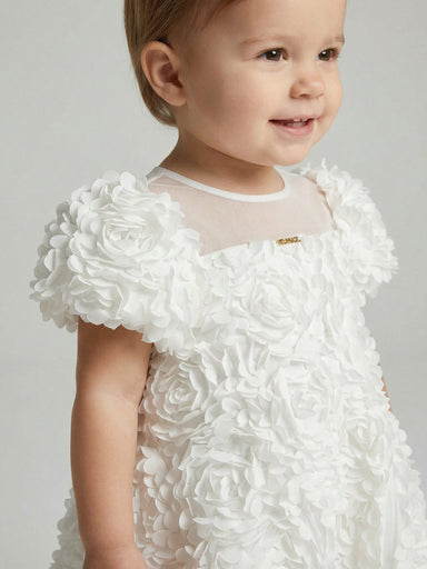 Twinset Girl's Clothing-261GB2101 Twinset satin dress in balloon line for little girl, decorated with rose-effect fabric. Round neck, puffed sleeve...