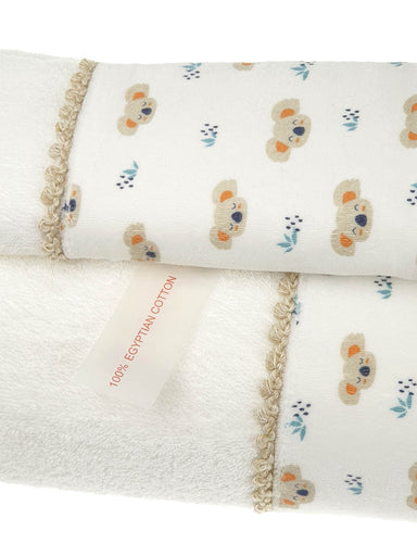 Σετ πετσετών μωρού, διακοσμημένες με υπέροχα print motifs. Το σετ Περιλαμβάνει 2 εξαιρετικής ποιότητας αφράτες και πολύ απορροφητικές πετσέτες (100...
