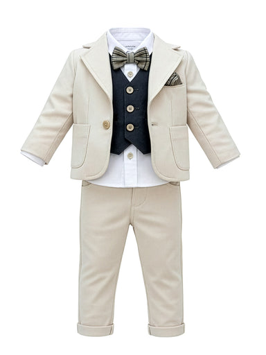 Ιταλική φινέτσα με ιδιαίτερες λεπτομέρειες σε ένα σύνολο που αποτελείται από εντυπωσιακό βαμβακερό σακακι και γιλέκο στολισμένο με υπέροχα κου...