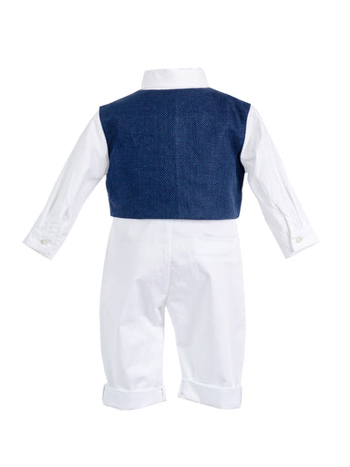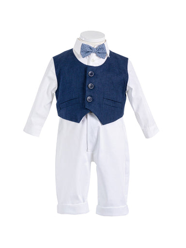 ΒΡΕΦΙΚΗ ΕΝΔΥΣΗ ΓΙΑ ΑΓΟΡΙ Designer’s Cat – Κομψό σετ βρεφικού κοστουμιού που αποτελείται από λινό γιλέκο Jaquard με κουμπί, βαμβακερό παντελόνι και ...