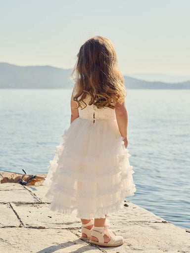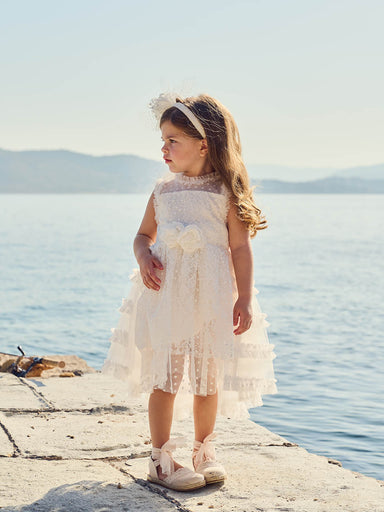 ΕΝΔΥΣΗ ΓΙΑ ΚΟΡΙΤΣΙΑ-ΒΑΠΤΙΣΗ Ρομαντικό βαπτιστικό φόρεμα με βολάν, από εξαιρετικό κεντημένο πουά τούλι, διακοσμημένο με γαλλική δαντέλα στο μπούστο...