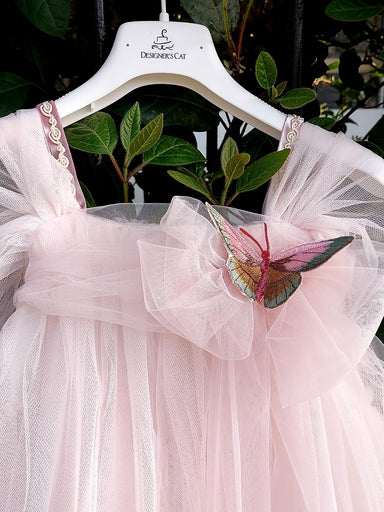 ΕΝΔΥΣΗ ΓΙΑ ΚΟΡΙΤΣΙ –ΒΑΠΤΙΣΗ Ρομαντικό clos φόρεμα DESIGNER’S CAT, σε γλυκό ροζ χρώμα,από βαμβάκι και μετάξι, με κοντά μανίκια gigot, εξώπλατο και δ...