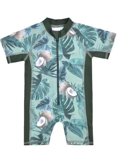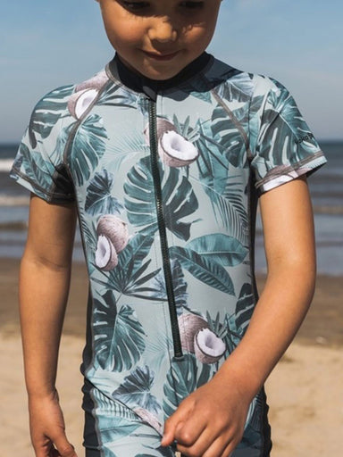 Ολόσωμο μαγιό για κορίτσι Ολόσωμο μαγιό για κοριτσάκι με animal τύπωμα . Το outfit έχει κοντά μανίκια και κοντό παντελόνι. Ανοίγει στο μπροστινό μέ...