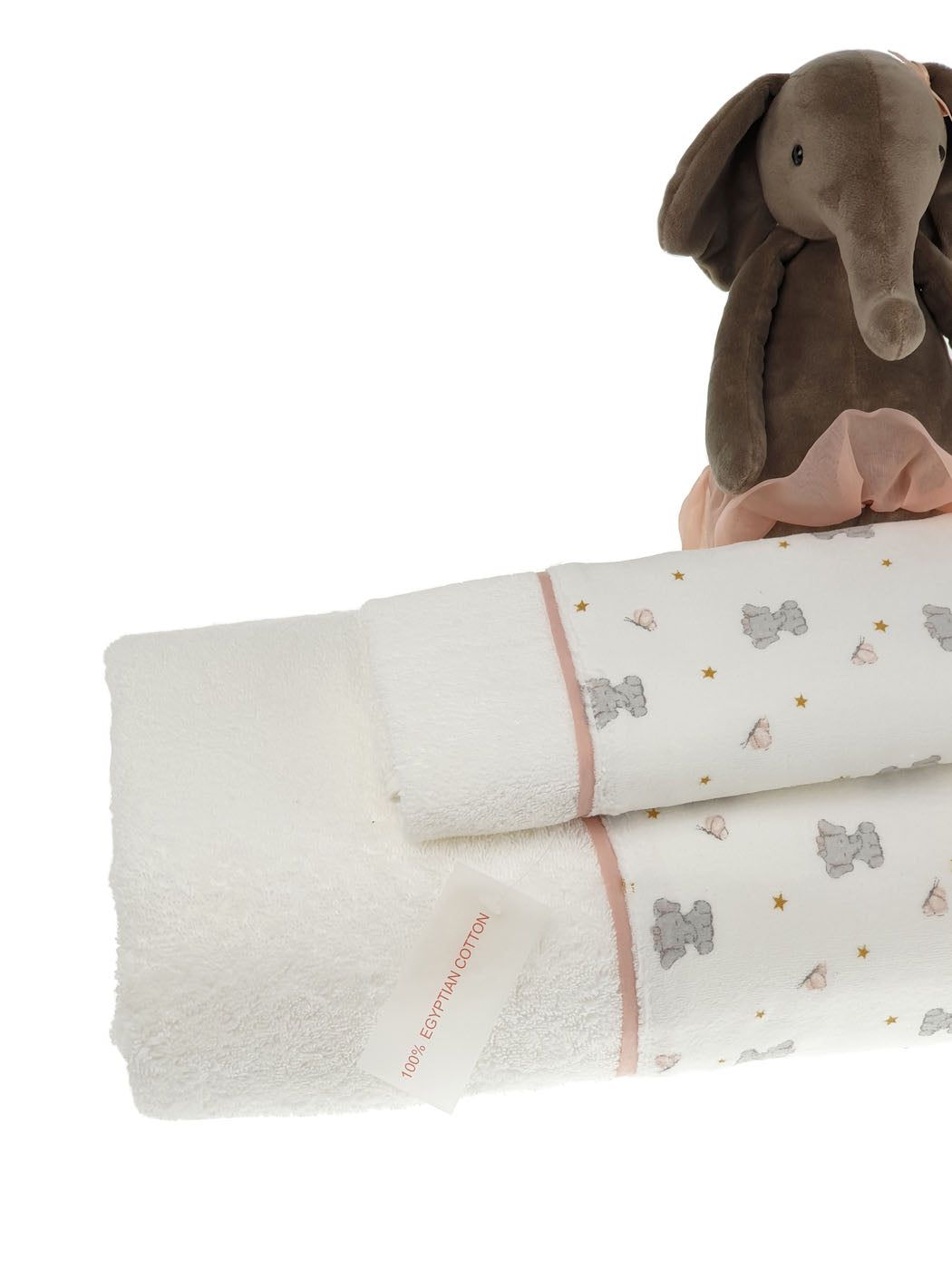 Παιχνιδιάρικο σετ πετσετών μωρού, διακοσμημένες με υπέροχα print motifs. Το σετ Περιλαμβάνει 2 εξαιρετικής ποιότητας αφράτες και πολύ απορροφητικές πετσέτες (100% αιγυπτιακό βαμβάκι 600 gr / m2), σε διάσταση 90X150 cm & 30 X 50 cm.