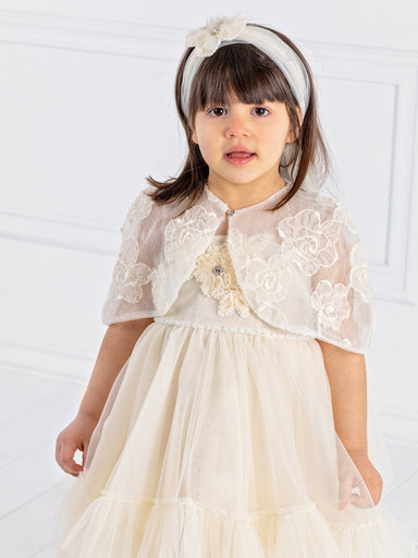 MARLEE Μπολερό βάπτισης Κομψό μπολερό από φίνο τούλι με χρυσές λεπτομέρειες διακοσμημένο με δαντελένια τρέσα. Μπορεί να συνδυαστεί με ασορτί φόρεμα...