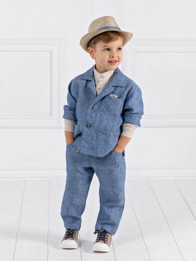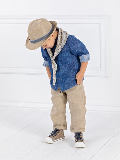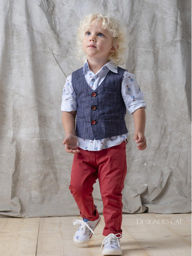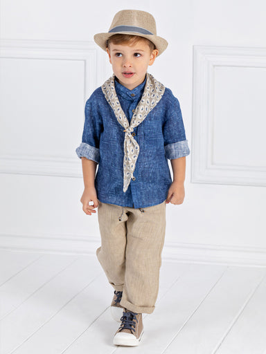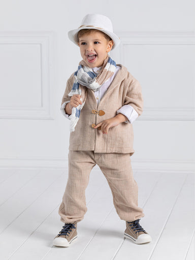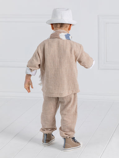 ΕΝΔΥΣΗΓΙΑ ΑΓΟΡΙ - ΒΑΠΤΙΣΗ Designer’s Cat- Μοντέρνο βαπτιστικό σύνολο για αγόρι σετ 5 τεμαχίων, που αποτελείται από λινό παντελόνι και πουκάμισο σε ...