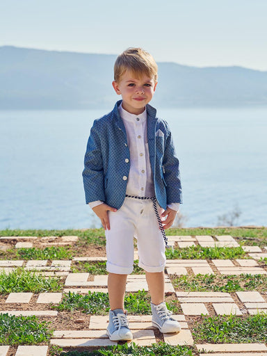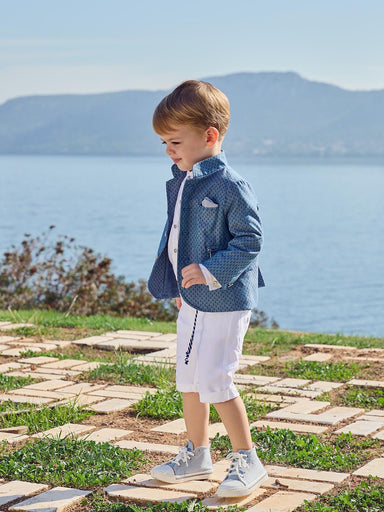 Βαπτιστικό κουστούμι Yachting style σε μπλέ και λευκό χρώμα Yachting style βαπτιστικό κουστούμι από εξαιρετικής ποιότητας σακάκι, μοντέρνο φίν...