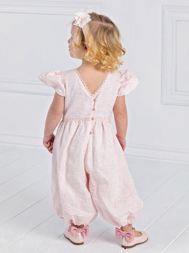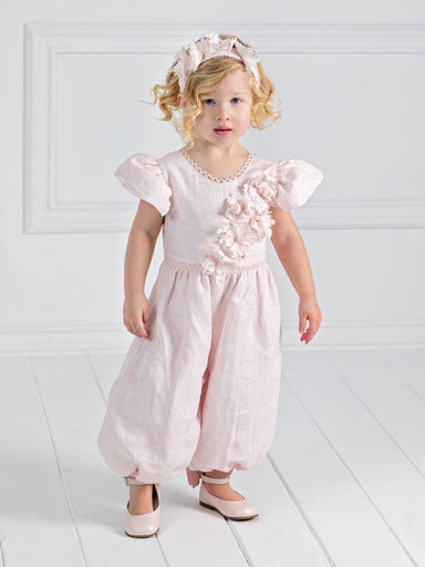 ΕΝΔΥΣΗ ΓΙΑ ΚΟΡΙΤΣΙ - ΒΑΠΤΙΣΗ Κομψή ολόσωμη φόρμα DESIGNER’S CAT, από 100% λινό με αλπικέ λουλούδια από βαμβακερή Γαλλική δαντέλα. Υπέροχα κοντά μαν...