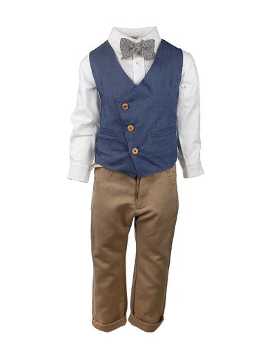 Βαπτιστικό σετ 6 τμχ για αγόρι, από βαμβάκι υψηλής ποιότητας. Μοντέρνο παντελόνι και γιλέκο σε μπλε χρώμα, συνδυασμένο με βαμβακερό πουκάμισο, διακ...