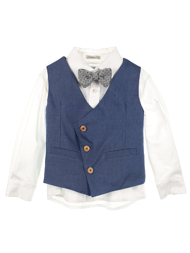 ΕΝΔΥΣΗ ΓΙΑ ΑΓΟΡΙ – ΒΑΠΤΙΣΗ Κλασικό ρούχο βάπτισης που αποτελείται από λινό ζακάρ παντελόνι και γιλέκο σε κανονική γραμμή, σατέν βαμβακερό πουκάμισο...