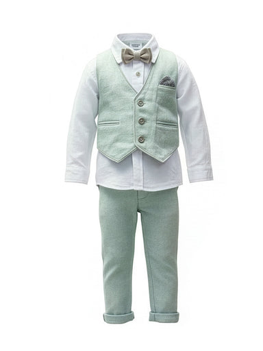 Κομψό και μοντέρνο βαπτιστικό σύνολο από 100% Λινό (master of European linen), με όμορφο γιλέκο σε απόχρωση του βεραμάν. Είναι διακοσμημένο με υπέ...