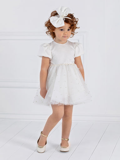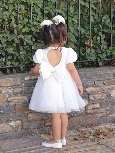 ΕΝΔΥΣΗ ΓΙΑ ΚΟΡΙΤΣΙ – ΒΑΠΤΙΣΗ Κομψό Clos εξώπλατο φόρεμα από μετάξι, με κοντό μανίκι gigot και τούλινη φούστα κεντημένη με πέρλες. Ένα μοναδικό φόρ...