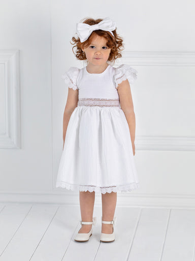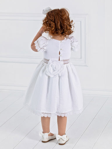 ΕΝΔΥΣΗ ΓΙΑ ΚΟΡΙΤΣΙ – ΒΑΠΤΙΣΗ Κομψό φόρεμα με έξω πλάτη από βαμβακερή δαντέλα "Broderie", στρογγυλή λαιμό κόψη και κοντά μανίκια. Είναι διακοσμημένο...