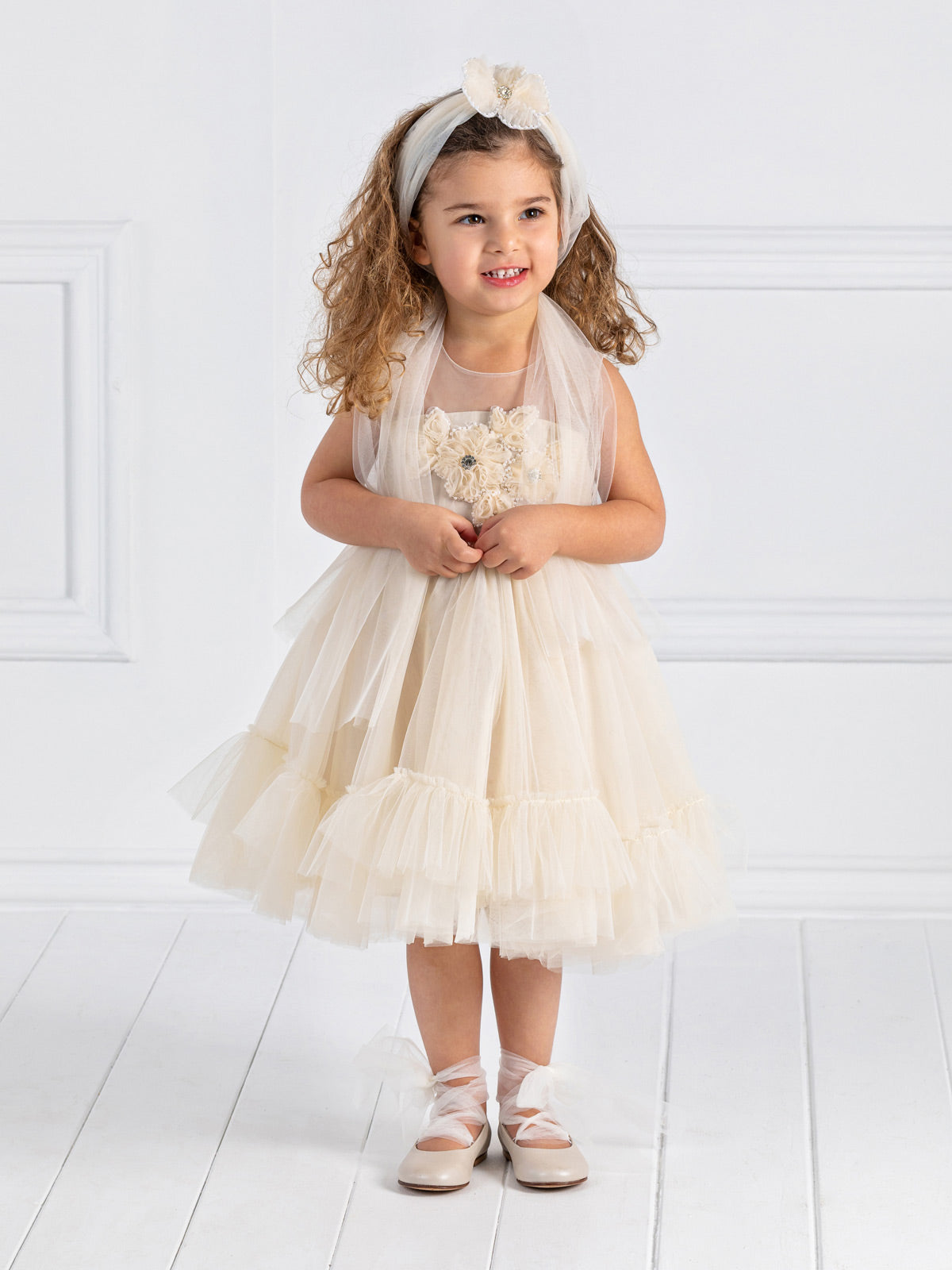 Τούλινο φόρεμα βάπτισης με πέρλες και στρας - BRIGHT