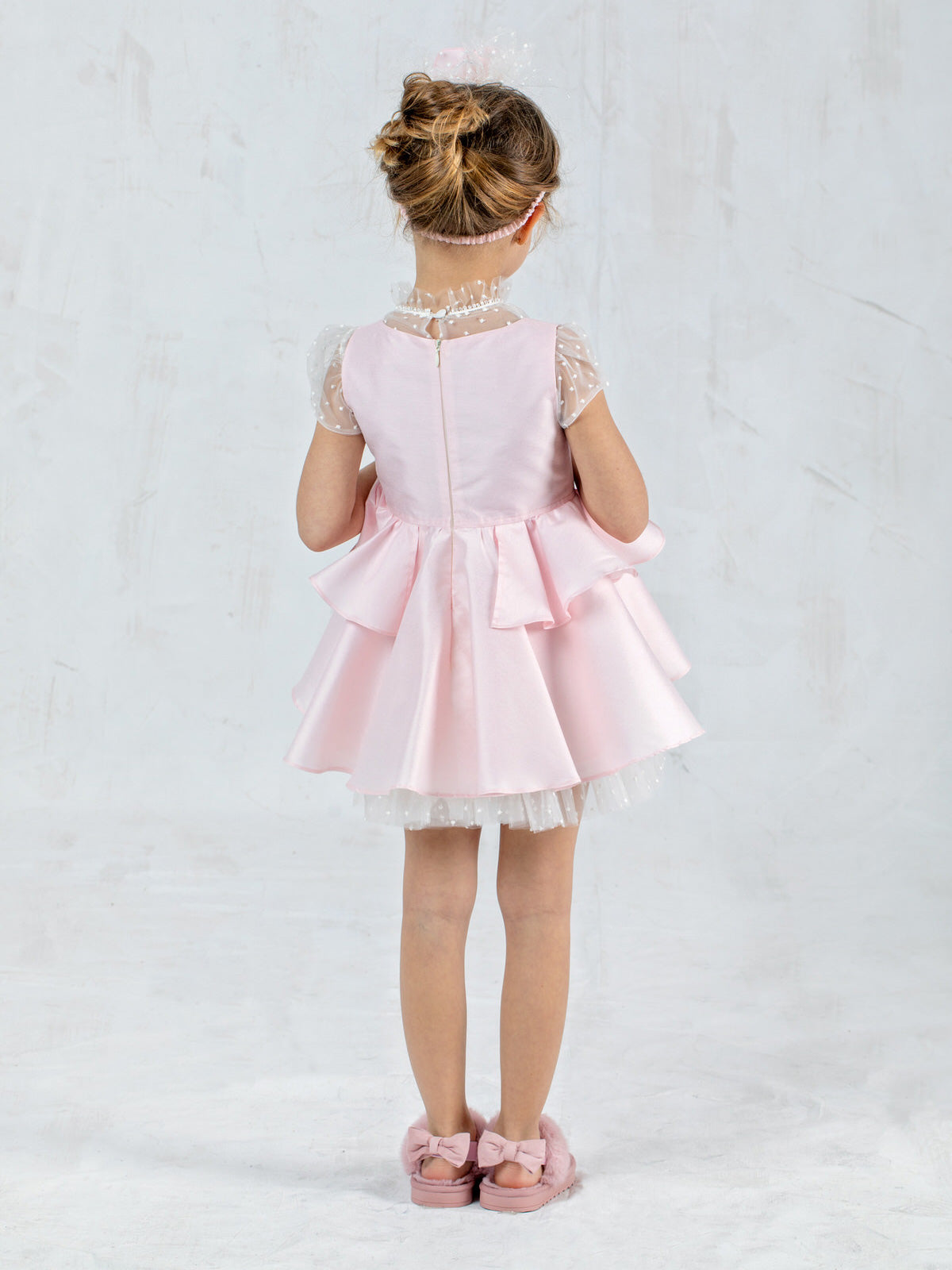 Μεταξωτό φόρεμα Βάπτισης με τούλι πουα - GALINA