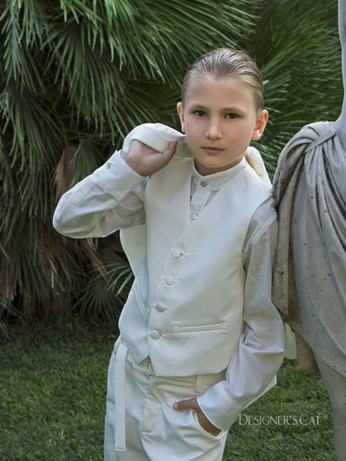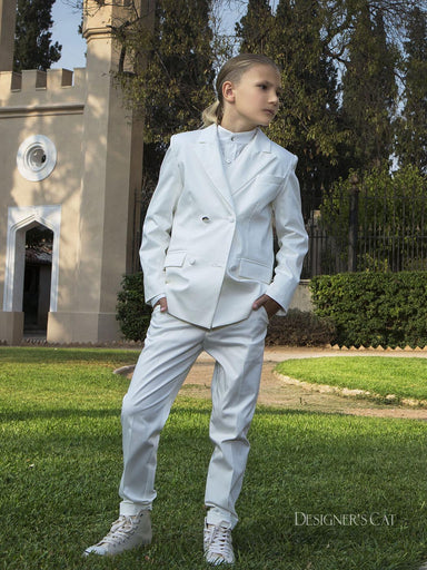 ΕΝΔΥΣΗ ΓΙΑ ΑΓΟΡΙ - ΒΑΠΤΙΣΗΜοντέρνο κοστούμι DESIGNER’S CAT για αγόρι, που αποτελείται από ζακάρ βαμβακερό παντελόνι και σακάκι, βαμβακερό πουκάμισο...