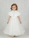 Κομψό μεταξωτό μπολερό για κοριτσάκι, με στρογγυλό γιακά διακοσμημένο με φτερά στους ώμους και κουμπί κόσμημα. Ένα όμορφο τοπ, ιδανικό για ιδιαίτερες περιστάσεις όπως η βάπτιση. Μπορεί να συνδυαστεί με ασορτί φορέματα από τη συλλογή «Designer’s Cat».