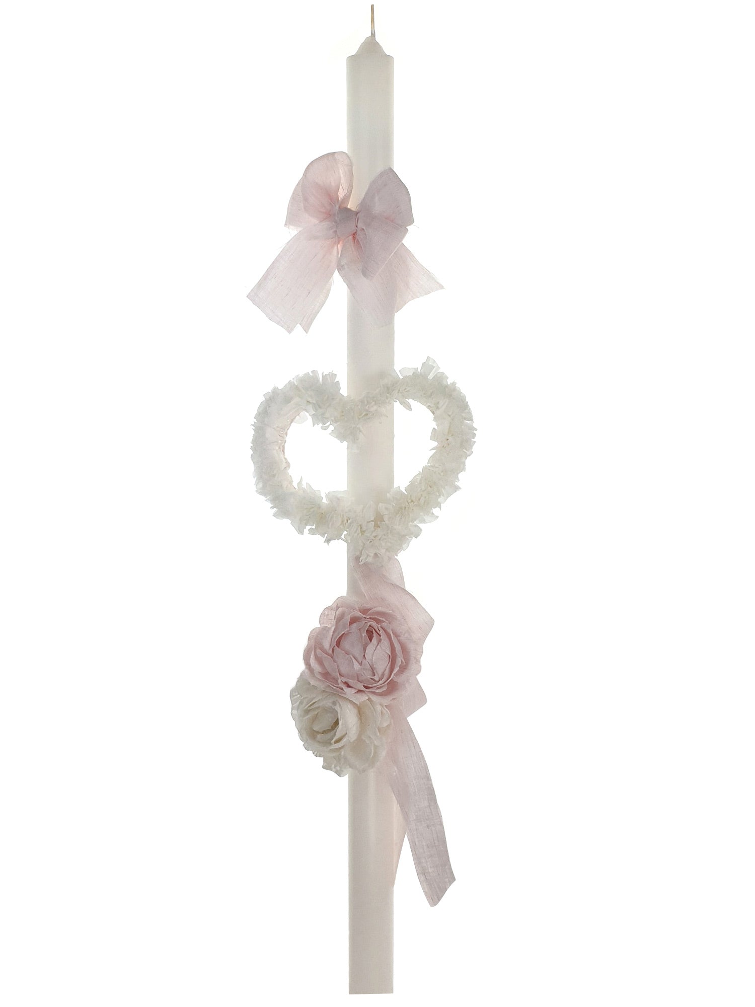 Λαμπάδα βάπτισης με στεφάνι καρδιά-CHELSEA