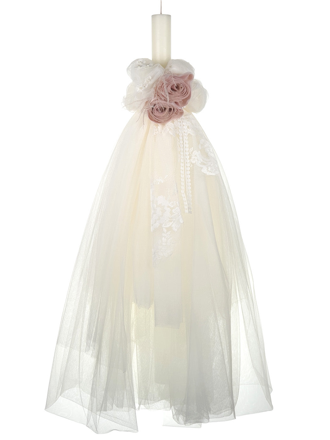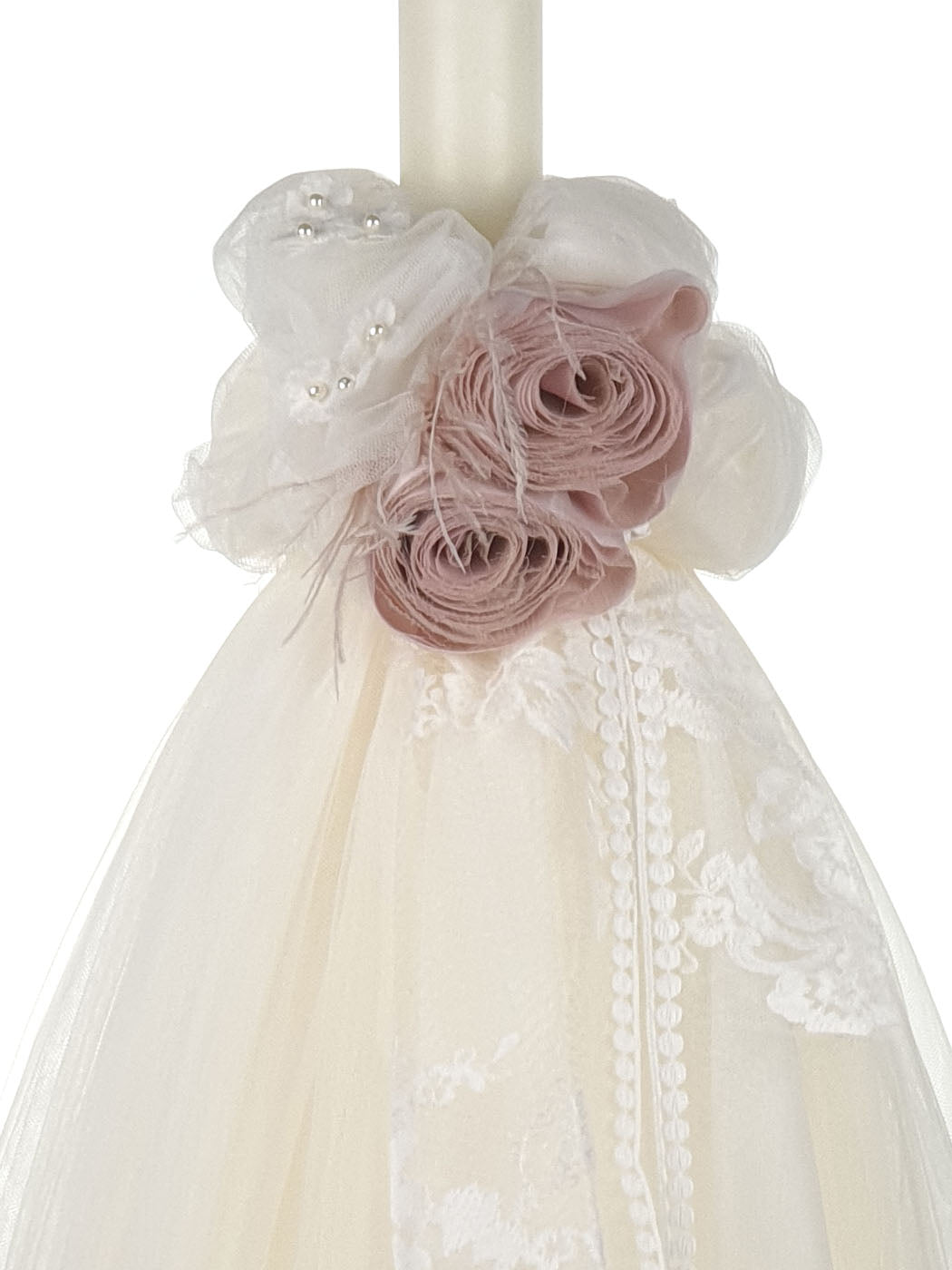 Λαμπάδα Βάπτισης με δαντέλα και λουλούδια - IOKASTE
