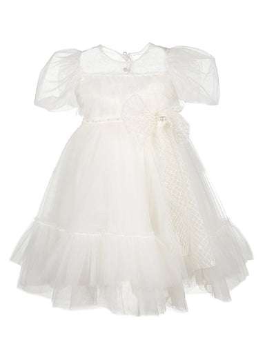 ΕΝΔΥΣΗ ΓΙΑ ΚΟΡΙΤΣΙ Designer's Cat – Ρομαντικό φόρεμα με κοντό μανίκι gigot, από κεντημένο τούλι με μικρά λουλούδια διακοσμημένο με κομψή κορδέλα ...