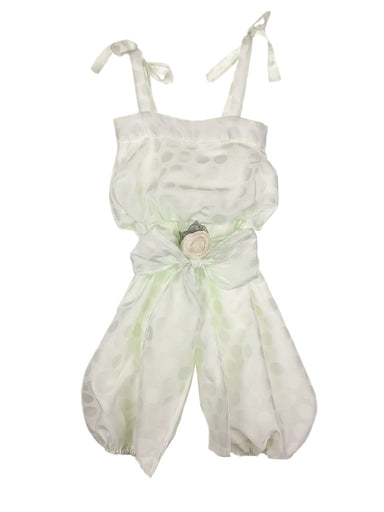Παιδικό Σαλβάρι-ολόσωμη φόρμα της εταιρίας Designer's Cat,από υπέροχο σύμμικτο βαμβακερό ύφασμα με μεγάλα πουά σε γλυκό πράσινο λάιμ. Ένα καλοκαιρι...