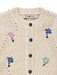 Βαμβακερή πλεκτή ζακέτα σε γλυκό κρεμ χρώμα για κορίτσια, με υπέροχα κεντημένα μικρά λουλούδια. Είναι πολύ άνετη και πρακτική.