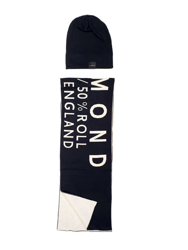 ΕΝΔΥΣΗ ΓΙΑ ΑΓΟΡΙΑ ΚΑΙ ΚΟΡΙΤΣΙΑ - John Richmond Junior Μοντέρνο παιδικό αξεσουάρ - σετ 2 τμχ σε μαύρο/άσπρο, ζακάρ σκουφάκι και κασκόλ με λογότ...