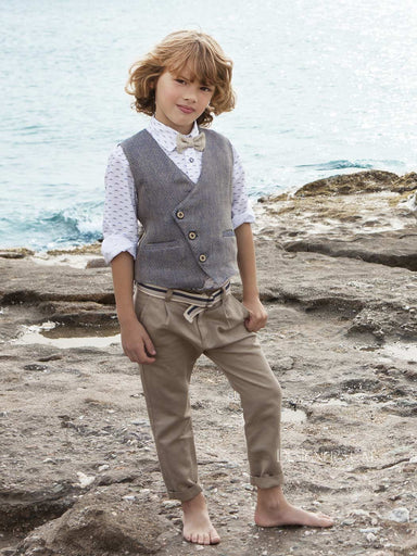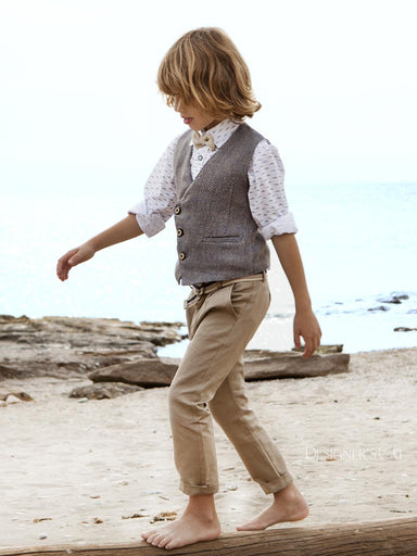 ΕΝΔΥΣΗ ΓΙΑ ΑΓΟΡΙ - ΒΑΠΤΙΣΗ Μοντέρνο σύνολο "Designer's Cat" για αγόρι που αποτελείται από σταυρωτό γιλέκο, από εξαιρετικό λινό ύφασμα μ...