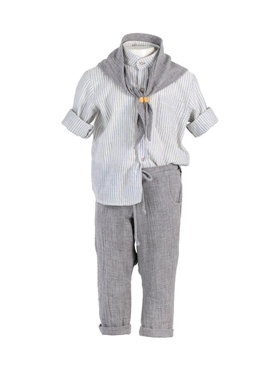 ΕΝΔΥΣΗ ΓΙΑ ΑΓΟΡΙ - ΒΑΠΤΙΣΗ "Designer's Cat" Βαπτιστικό total 4 τεμ. για αγόρι. Μοναδικό άνετο σύνολο σε μποέμ στυλ. Το πουκάμισο με τον γιακά 'Mao...